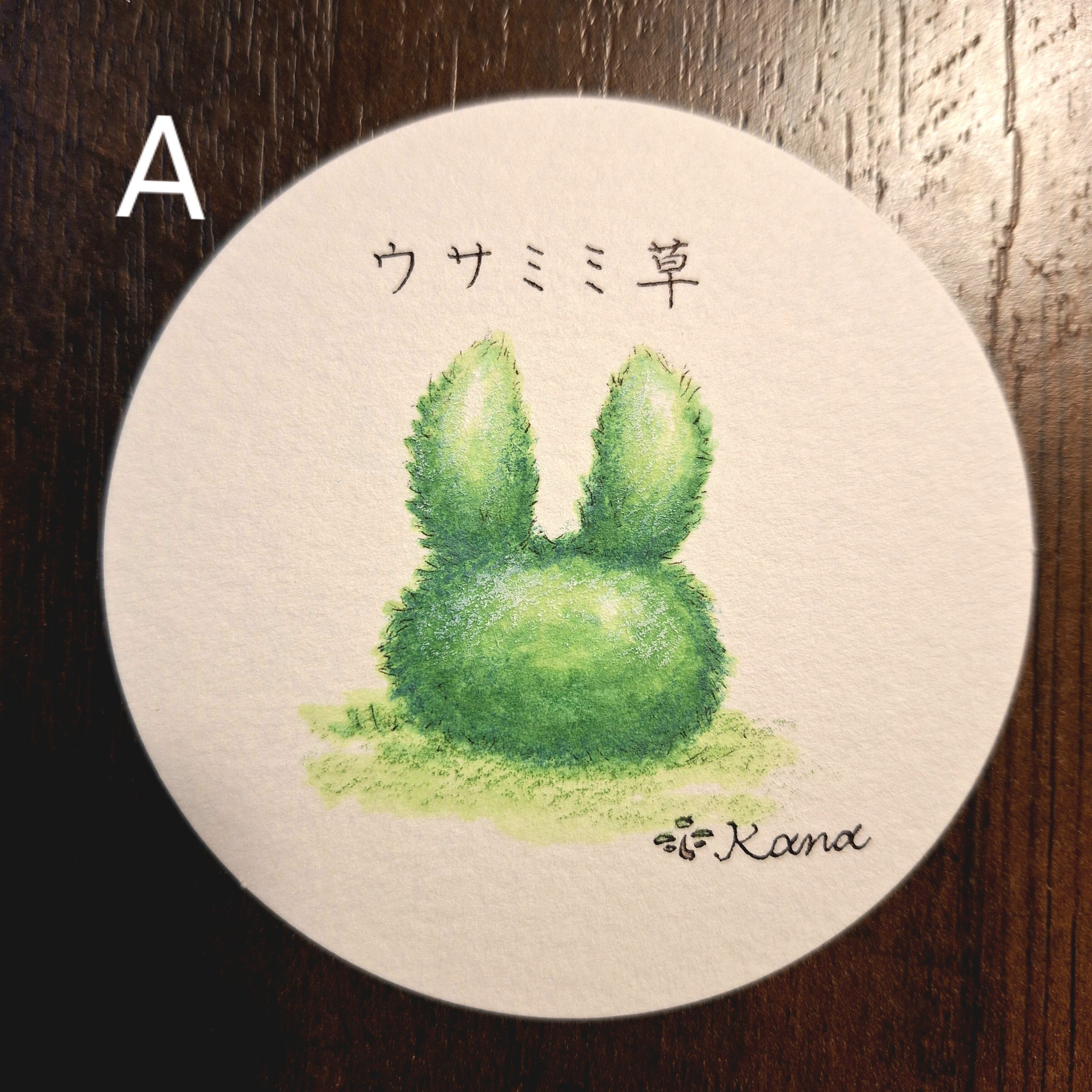 どこかに登場している ねル国の植物✨️ (ウサミミ草Bの裏面はありません) 画材 色鉛筆、コピック 直径約9cm 額装無し