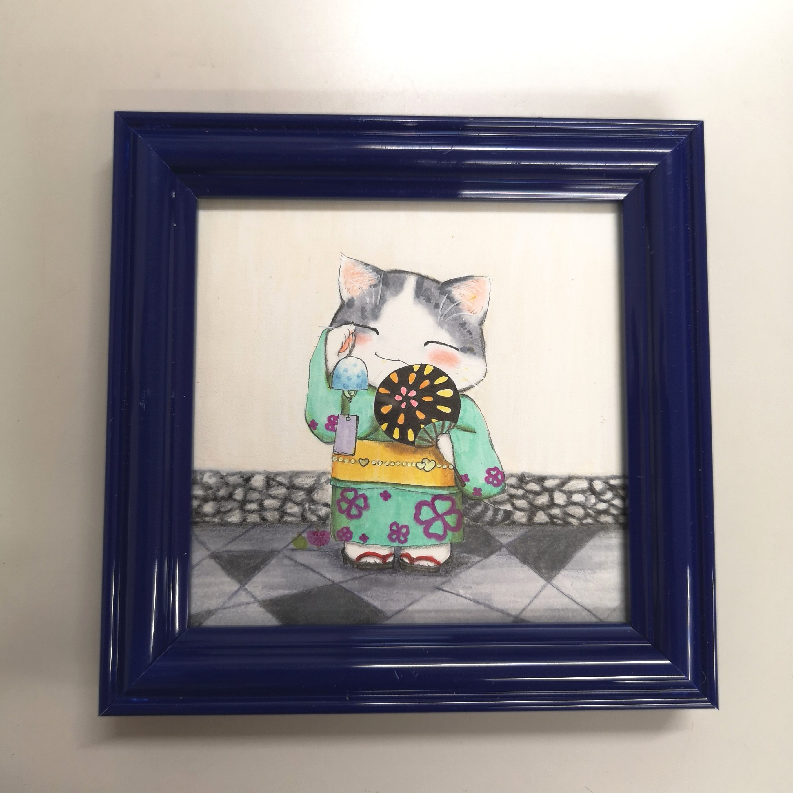 色鉛筆、コピックで描いた原画です。 額込みサイズ 約11㎝×11㎝ 実物とでは多少色味が異なります。 画像の額に入れてお送りします。