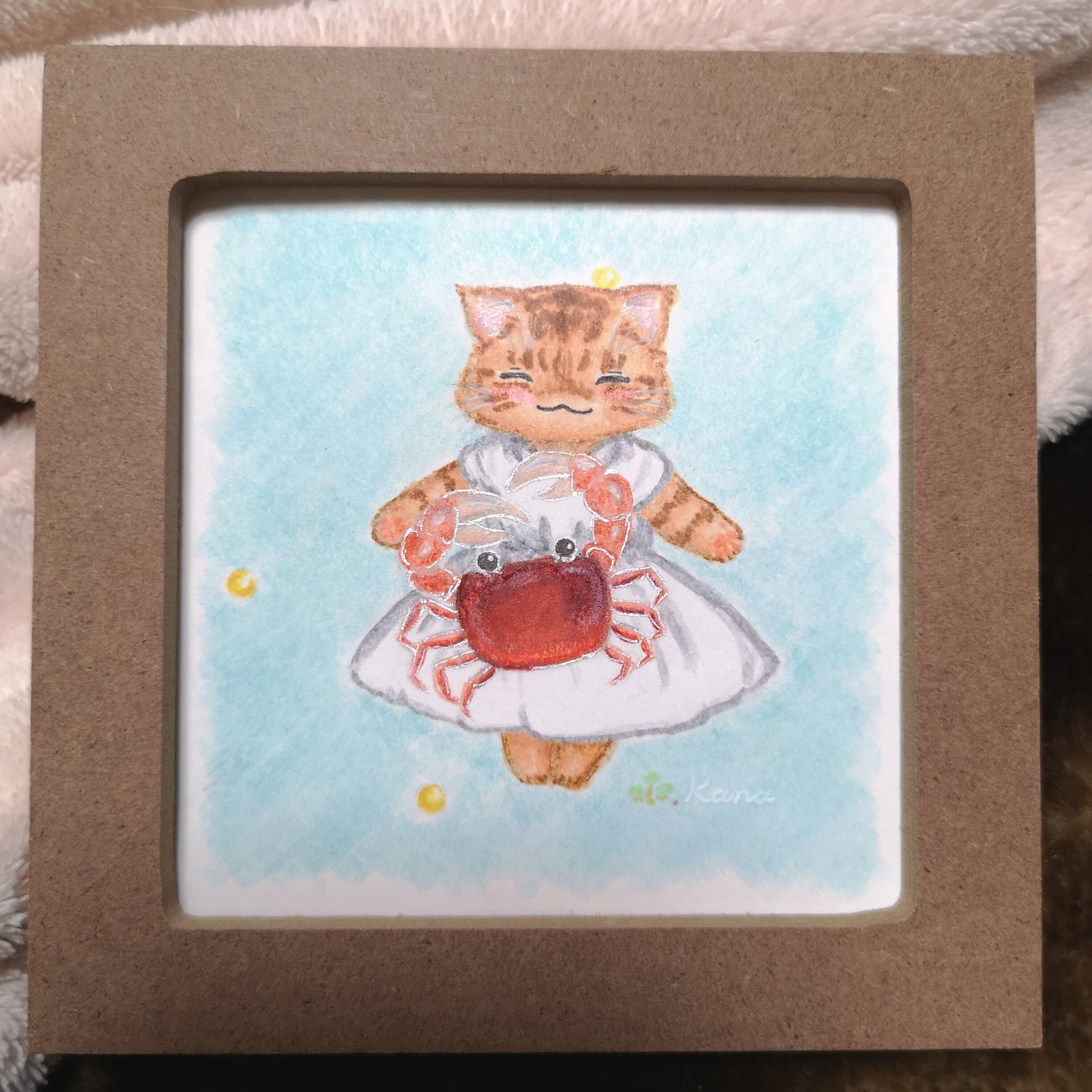 ねルこ12星座。蟹座です。 画材 色鉛筆、コピック 額込みサイズ 約10.7㎝×10.7㎝ 画像の額に入れてお送りします。