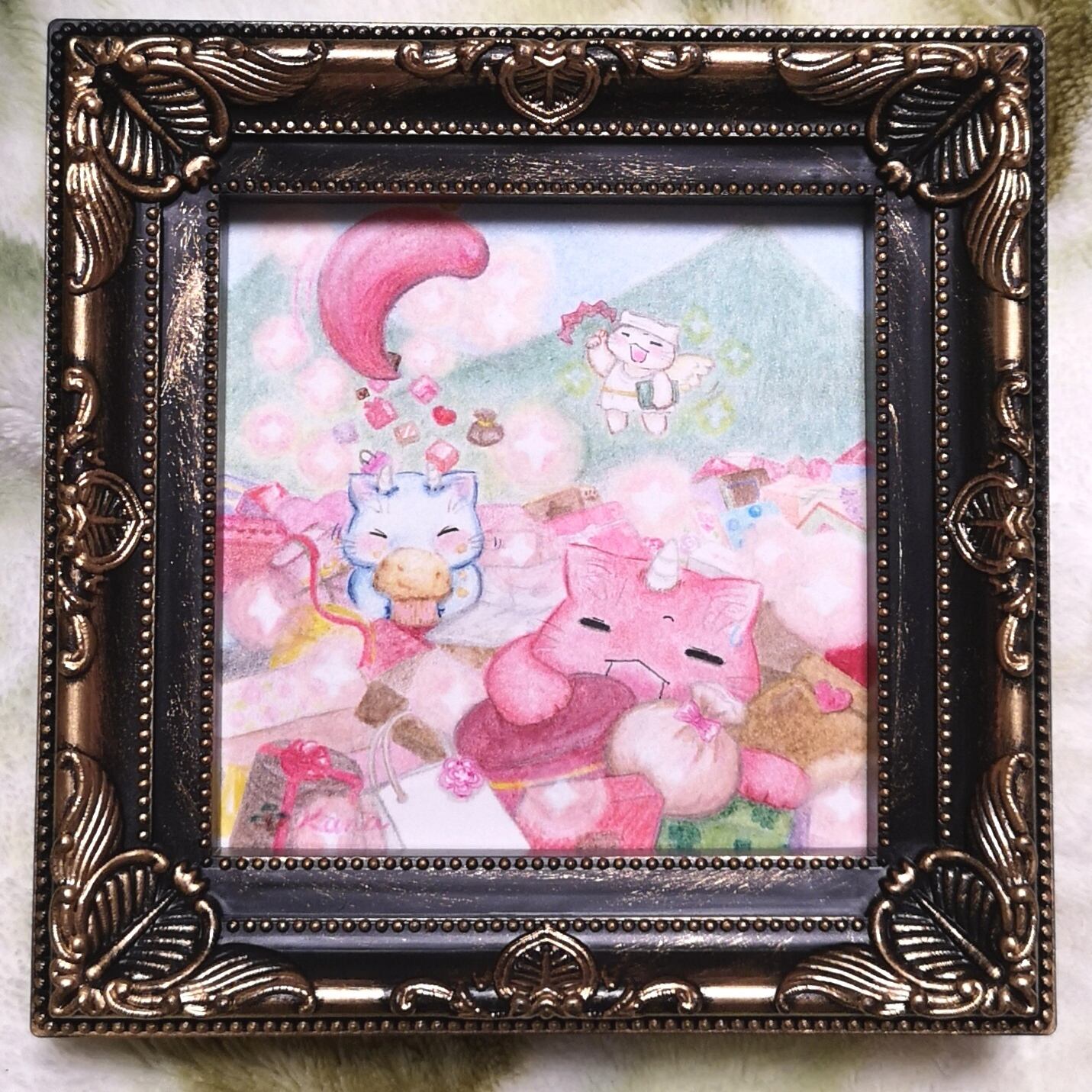 バレンタインの日。ねルこ鬼ヶ島に届くファンからの贈り物✨ 画材 色鉛筆、コピック 額込みサイズ 約12.5cm角 画像の額に入れてお送りします。