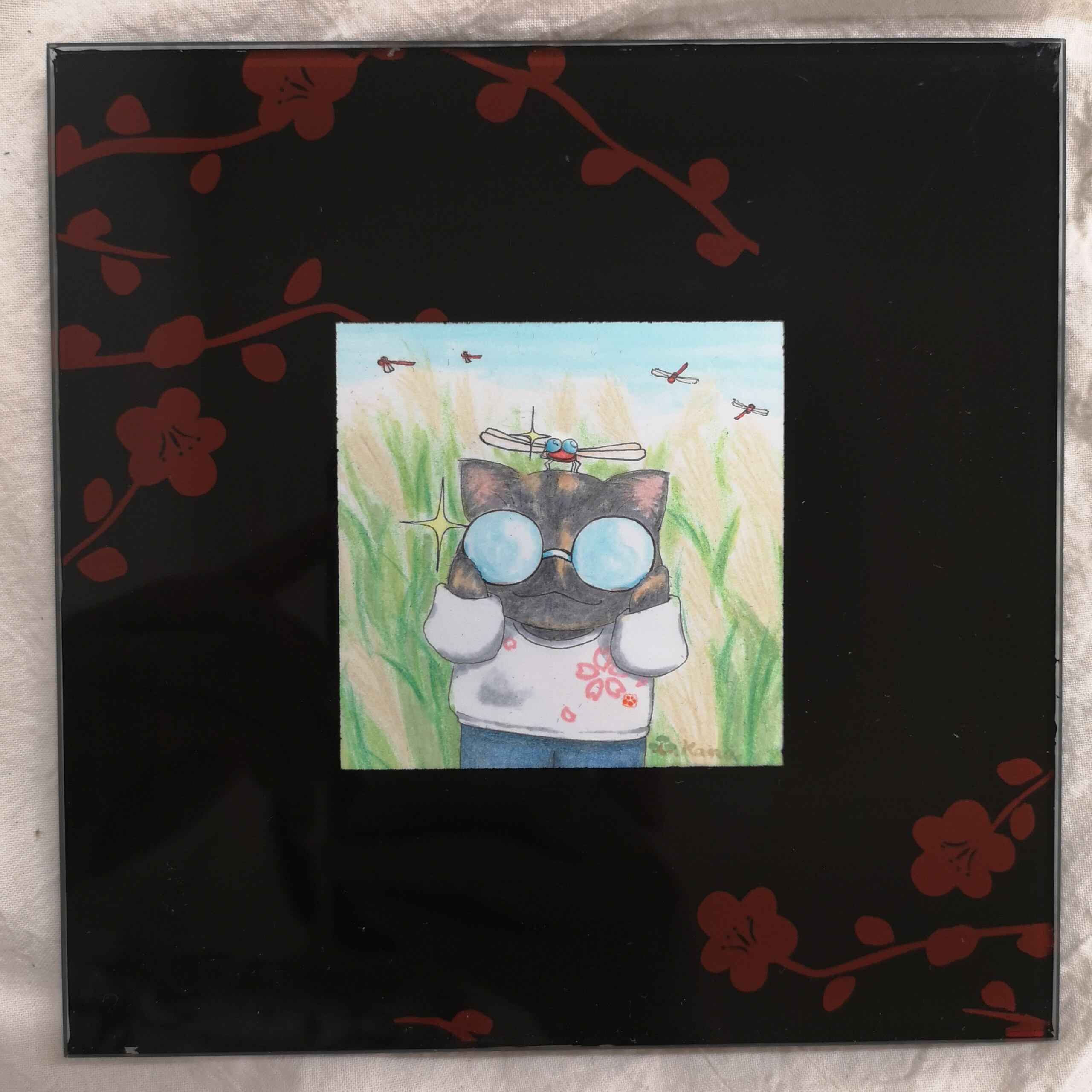 秋。 モデルは我が家のサクラ(´ω`*) 画材 色鉛筆、コピック 額(ガラス) 額込みサイズ 約14.8cm角 画像の額に入れてお送りします。
