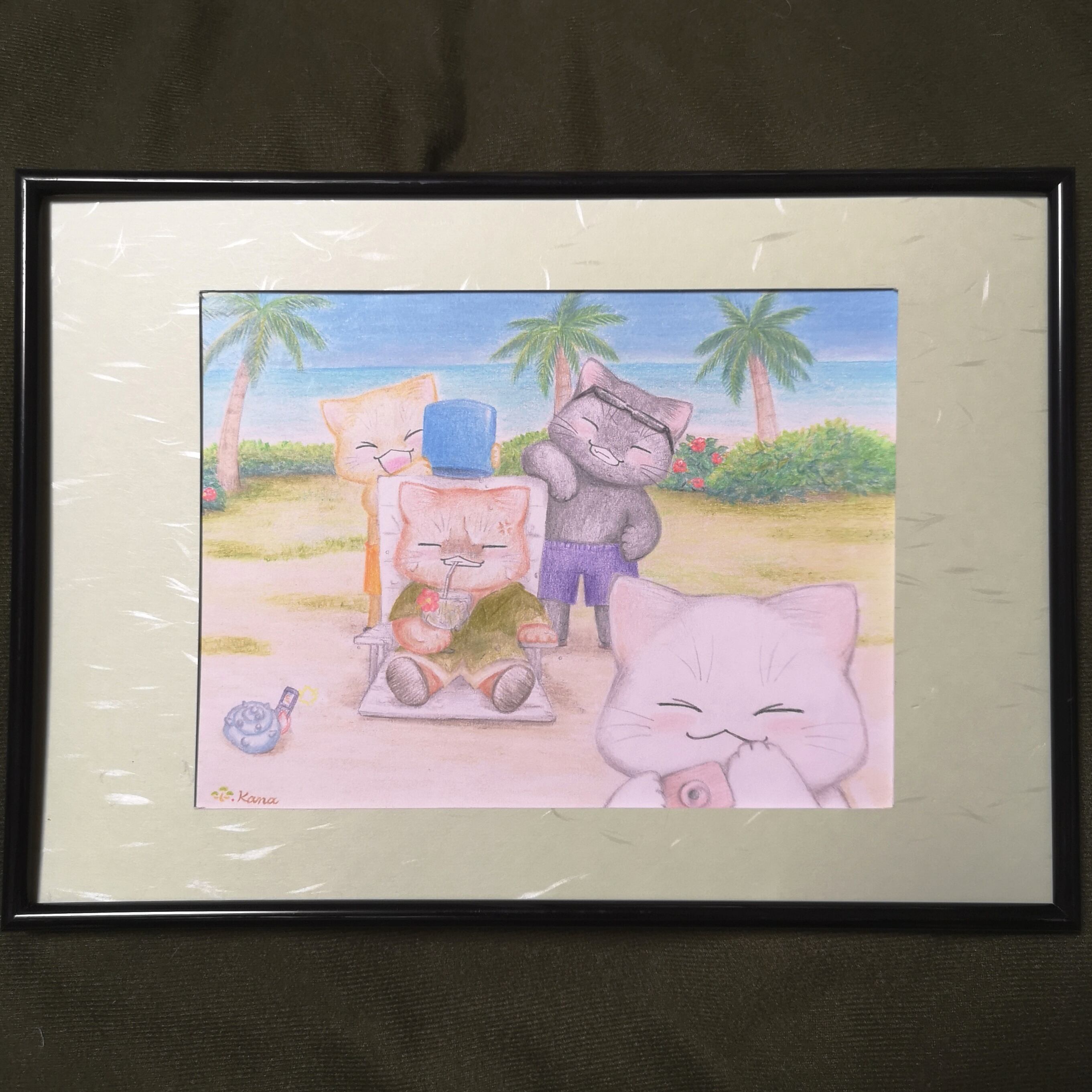 いたずら成功♪ 良い写真が撮れました✨(>ω<) 画材 色鉛筆 額込みサイズ 約21.7cm×30.5cm 額縁の前面はガラスです。 画像の額に入れてお送りします。