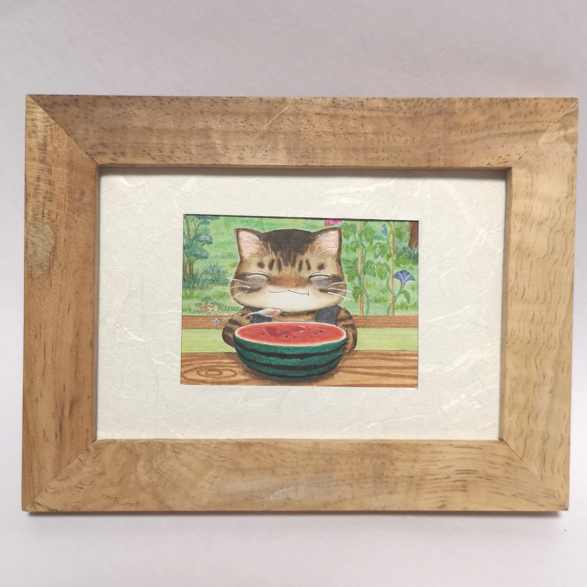 ある夏の日のおやつ✨ ぺろっと半玉は食べちゃう(*´ω`*) 額込みサイズ 約12cm×16cm 画像の額に入れてお送りします。
